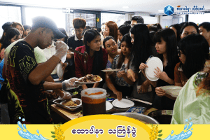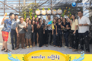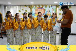 Along with beautiful traditional dance performances by the young female staff of SATHAPANA, as well as singing and entertainment, everyone happily enjoyed Myanmar traditional snacks and various foods, and took part together in the festive water-splashing activities.