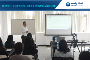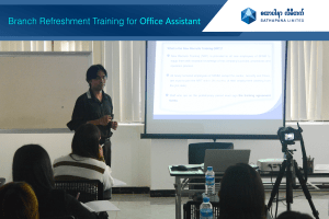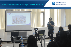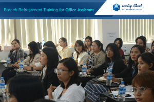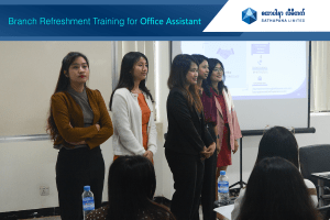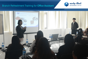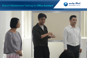 โ€œThe Refreshment Training for Office Assistantโ€ was successfully conducted at the SATHAPANA Head Office for Office Assistant from various branches across Myanmar. This training aimed to ensure daily operations smoothly and to keep staff updated on the companyโ€™s rules, regulations, and procedures for timely implementation.