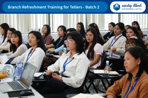 သင်တန်းကာလအတွင်း ရုံးခွဲအသီးသီးမှ Teller များအား ငွေကြေးဆိုင်ရာ လုပ်ငန်းစဉ်များ၊ ငွေလက်ခံ/ငွေပေးချေမှုအဆင့်ဆင့်၊ ငွေစာရင်းနှင့် စာရွက်စာတမ်းများကို စနစ်တကျ စာရင်းထည့်သွင်း ရေးဆွဲခြင်းတို့အား အဓိကထား ဆွေးနွေးသင်ကြားခဲ့ပါသည်။ ထို့အပြင် လုပ်ငန်းခွင်တွင် ဖြစ်ပေါ်လာနိုင်သည့် ပြဿနာများနှင့် စိန်ခေါ်မှုများကို လက်တွေ့ကျသော နည်းလမ်းများဖြင့် ဖြေရှင်းနိုင်စေရန် အတွေ့အကြုံမျှဝေမှုများကိုလည်း ထည့်သွင်းဆောင်ရွက်ခဲ့ပါသည်။